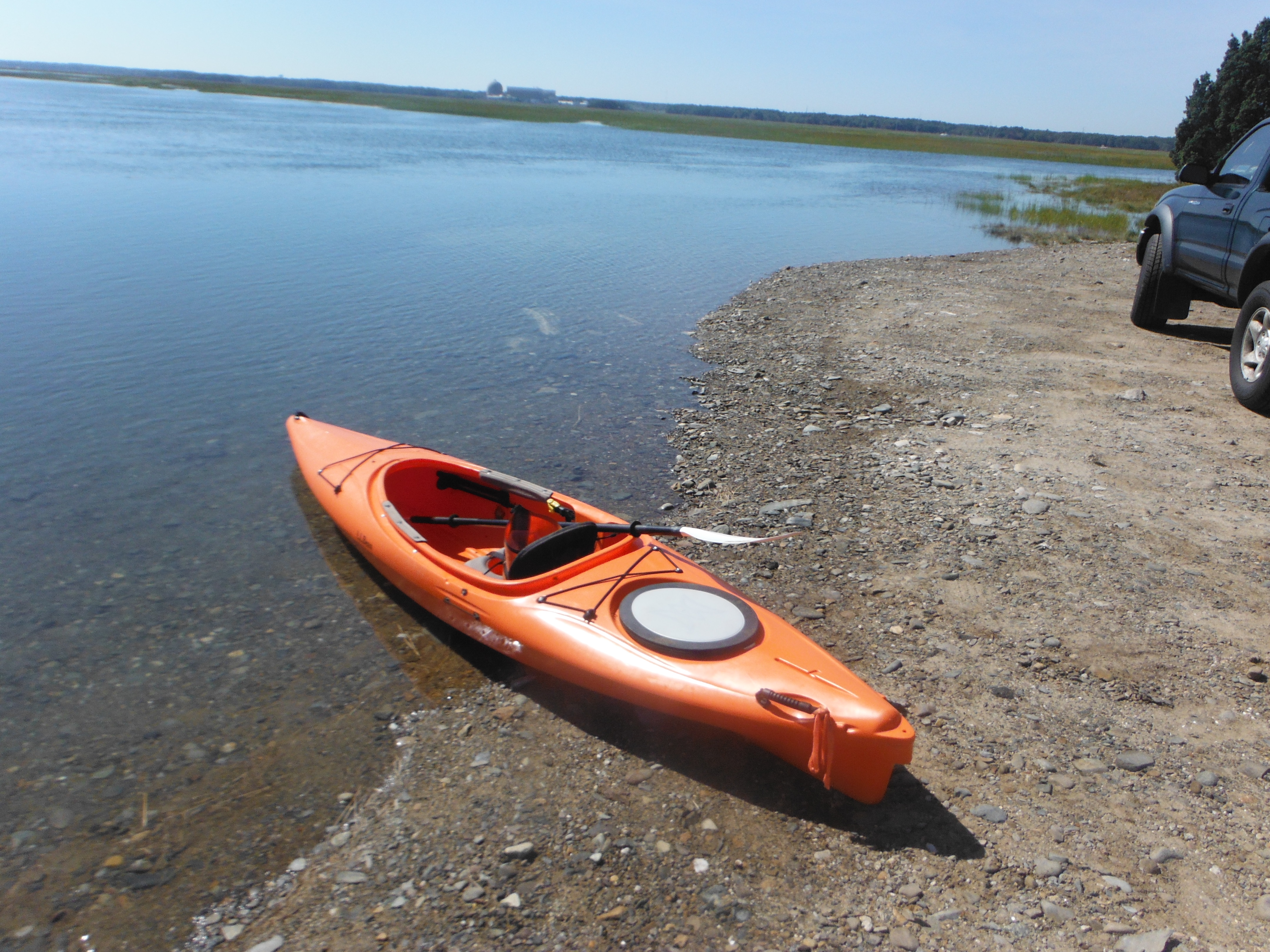 This is a trip that I have been hoping to take for a long time. Usually the parking is full. There is only enough parking for a few cars. Thousands of cars drive past the drop in point on a summer day. It is located on route 101 just before reaching the beach. Today there were no other cars. I drove past the memorial for the Hampton marshland and parked as far from the water as possible. The tide was still coming in and it was full moon which meant higher than normal high tide. I put the kayak in the water and decided to go where the current was taking me. Because the tide was still coming in the flow was away from the harbor.