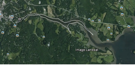 I put in the kayak there. There was a group of people there that lost their Frisbee in the river. I went out in the water, picked it up and threw it back to them. I went upstream to look at the dam and then immediately went downstream in the direction of Great Bay.